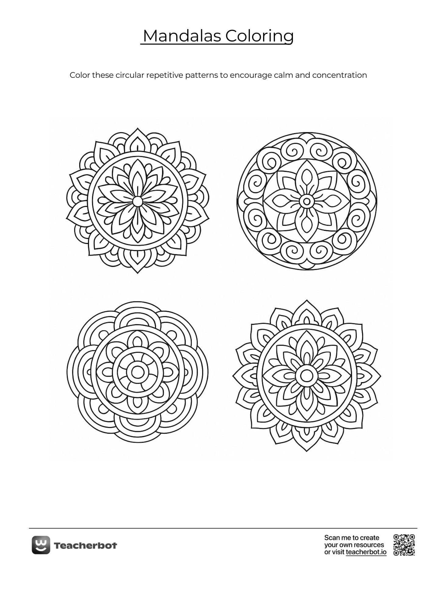 Older students: Offer intricate patterns or incorporate reflection prompts