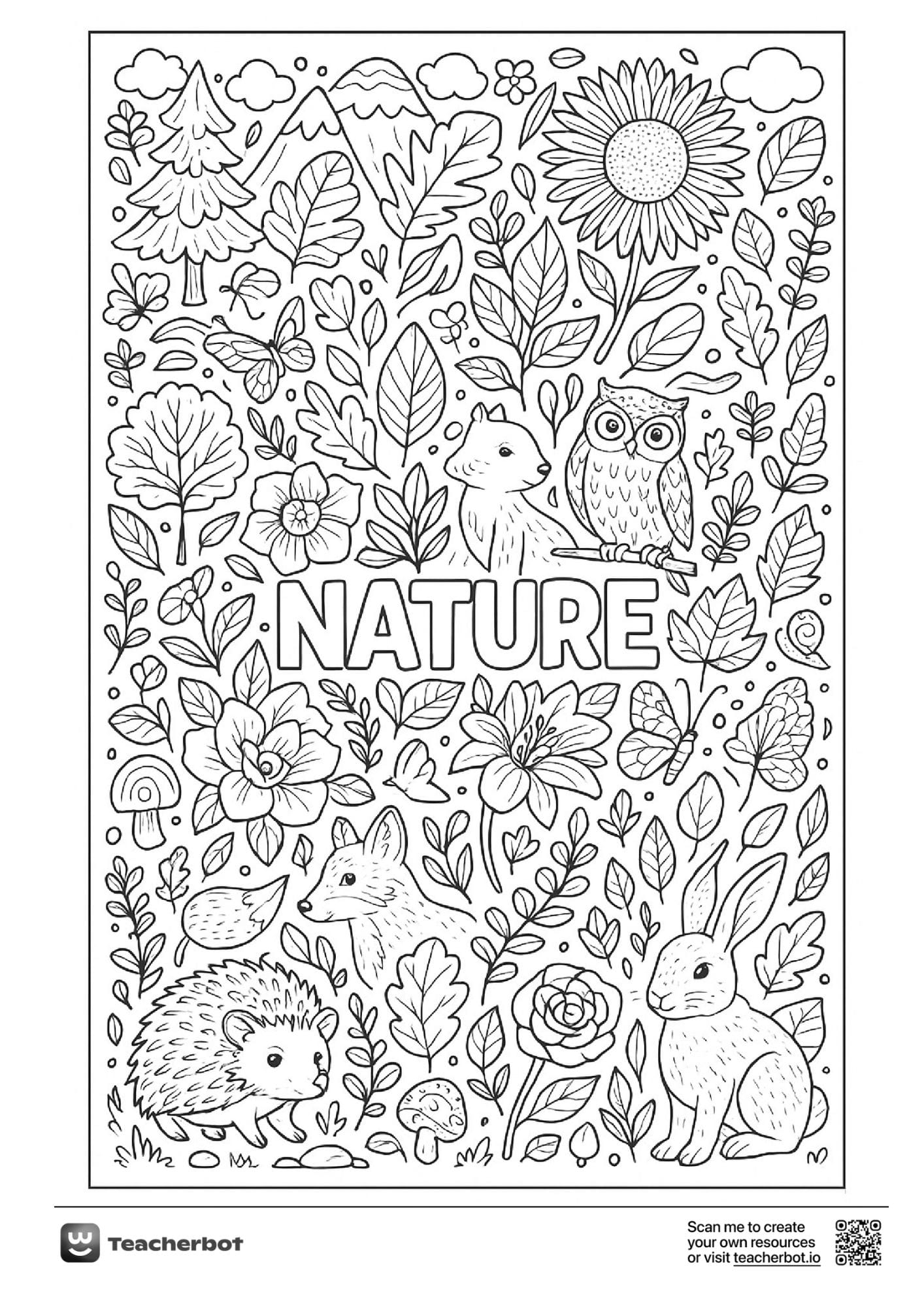 2. Nature-Themed Pages: Trees, leaves, clouds, or animals to connect students with nature
